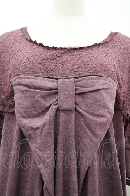axes femme / フロントリボンレース切り替え半袖カットソー M パープル I-26-04-21-013-AX-TO-SA-ZI