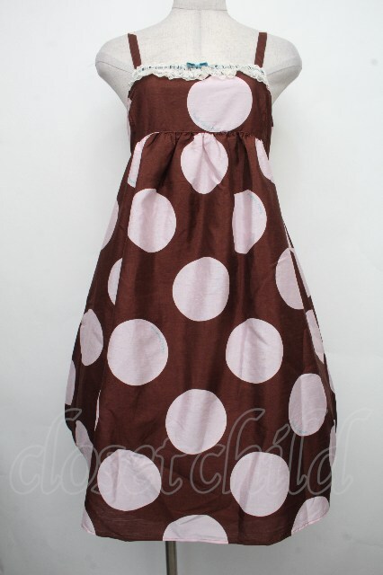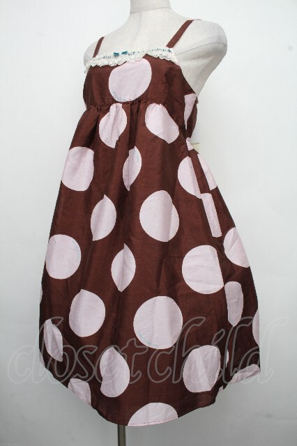 Emily Temple cute / BIGドットキャミソールワンピース ブラウンxピンク S-26-04-21-027-ET-OP-AS-ZS [2100020000031626-S-26-04-21-027-ET-OP-AS-ZS]