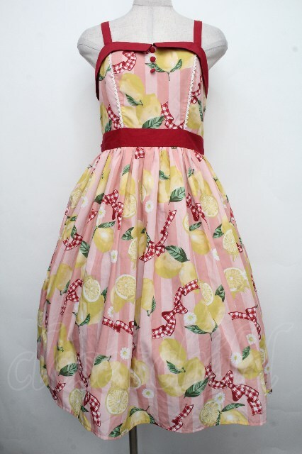 axes femme kawaii / ストライプレモン柄ジャンスカ ピンク S-26-04-21-028-AX-OP-AS-ZS [2100020000031803-S-26-04-21-028-AX-OP-AS-ZS]