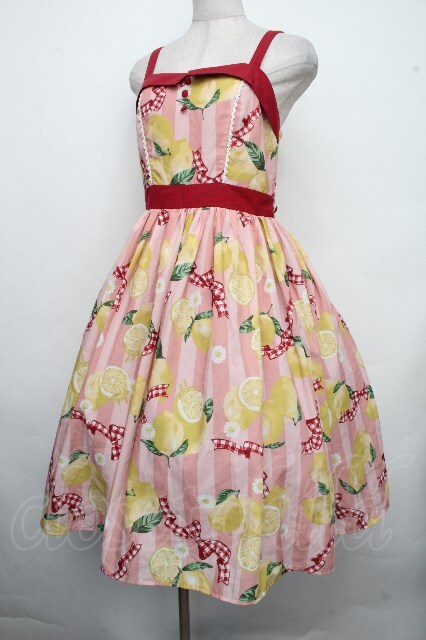 axes femme kawaii / ストライプレモン柄ジャンスカ ピンク S-26-04-21-028-AX-OP-AS-ZS