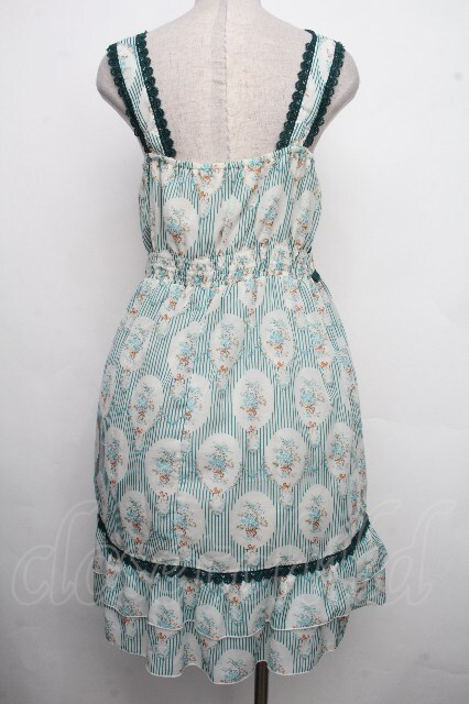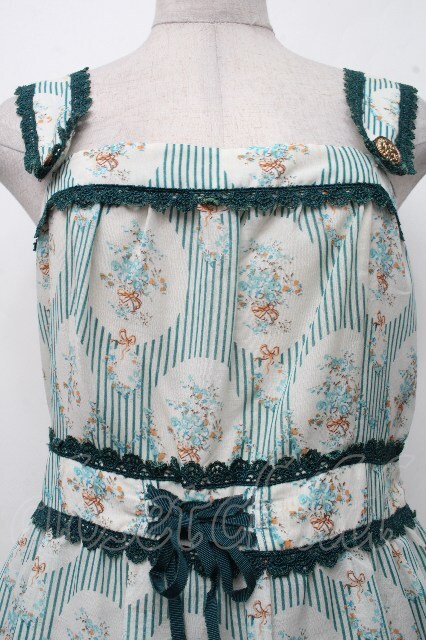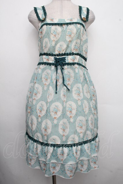 axes femme / フラワーストライプワンピース グリーンxオフ S-26-04-21-035-AX-OP-HR-ZS