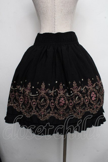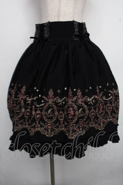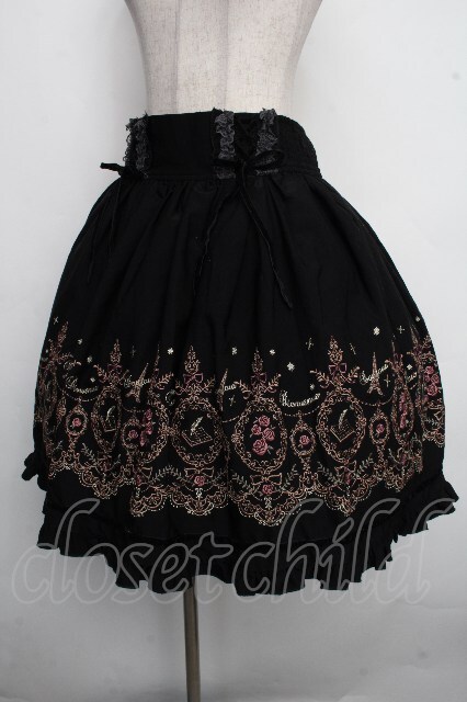 axes femme / カラー刺繍レースアップスカート 黒 S-26-04-21-054-AX-SK-HR-ZS
