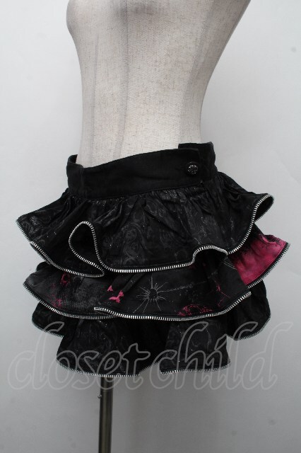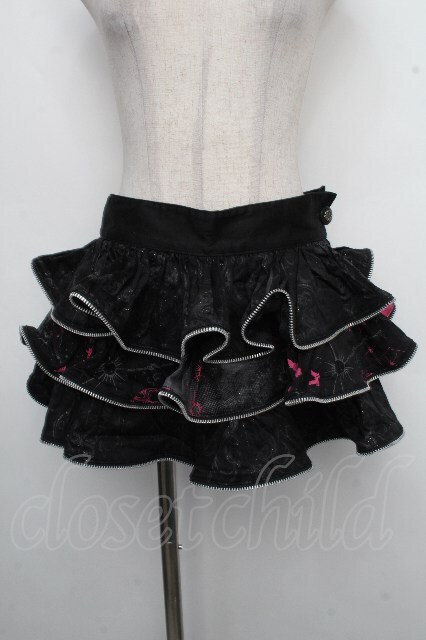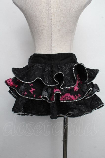 h.Jelly HONEY / 蝶刺 ジャガードスカート 黒xピンク S-26-04-21-055-HN-SK-HR-ZS