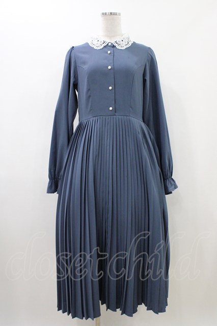 m petit by misako / AM*レースエリプリーツワンピース L ブルー H-26-04-27-1026-LO-OP-YZ-ZH