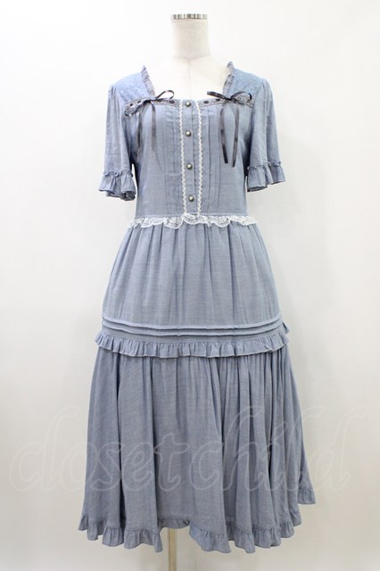 axes femme / シャンブレーロングワンピース M ブルー H-26-04-27-1027-AX-OP-NS-ZH