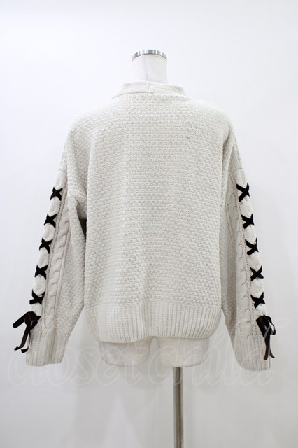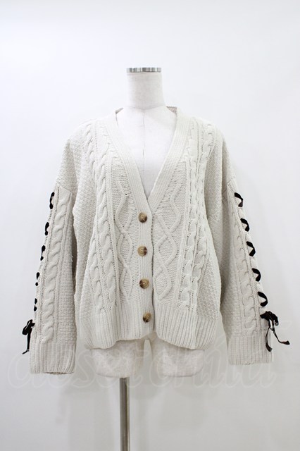 axes femme / レースアップニットカーディガン M アイボリー H-26-04-27-1065-AX-TO-NS-ZH