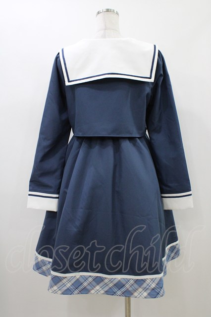 Amavel / School Check Setup風セーラーワンピース Free ブルー H-26-04-27-1024-CA-OP-NS-ZH