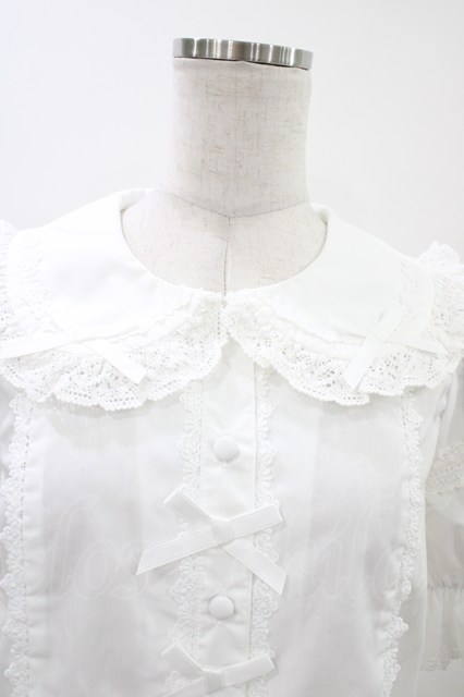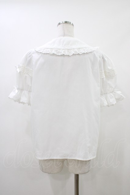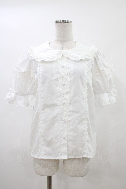Chalmiere / トーションレース丸襟半袖ブラウス M 白 H-26-04-27-1044-0-BL-NS-ZH