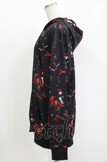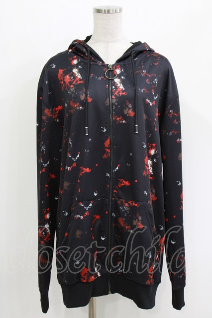NieR Clothing / 総柄ZIPパーカー 黒×赤 H-26-04-27-024-PU-TO-KB-ZH