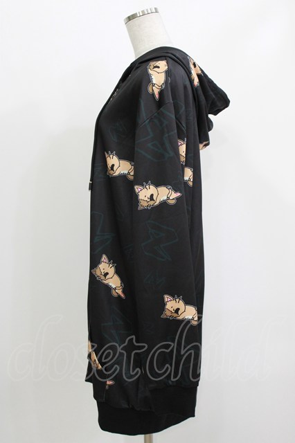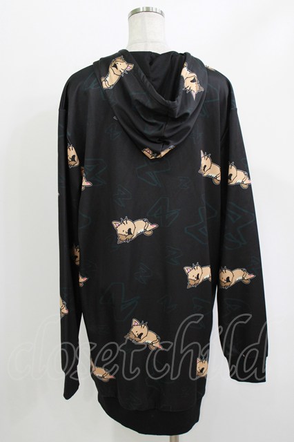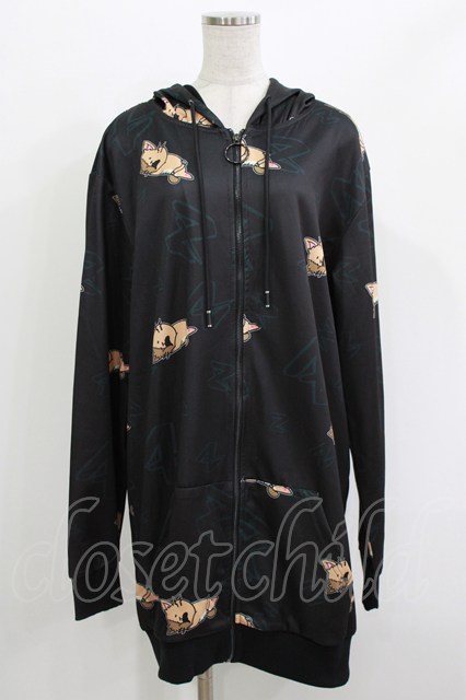 NieR Clothing / 総柄ZIPパーカー 黒/ミケ H-26-04-27-033-PU-TO-KB-ZH