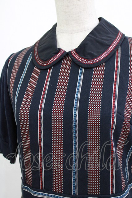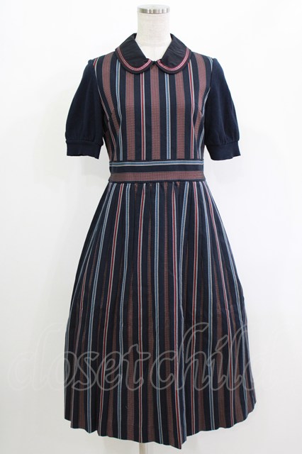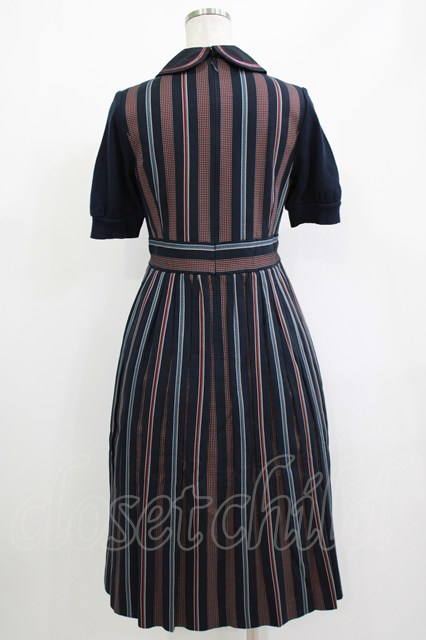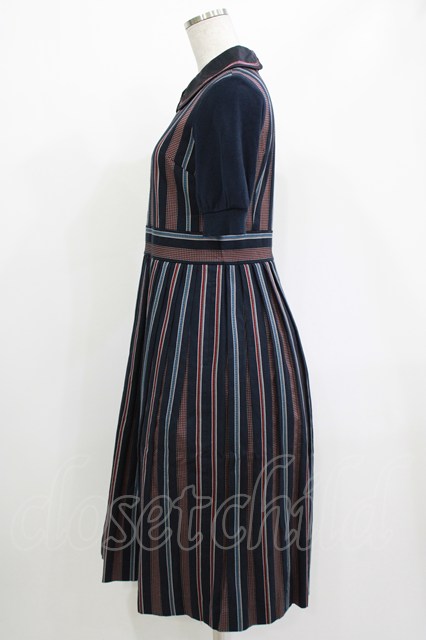 Jane Marple Dans Le Salon / ニットスリーブレジメンタルワンピース ネイビー H-26-04-27-003-JM-OP-KB-ZH