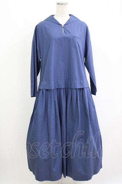 Jane Marple Dans Le Salon / Coating typewriter marine collar dress M ブルー H-26-04-27-007-JM-OP-KB-ZH
