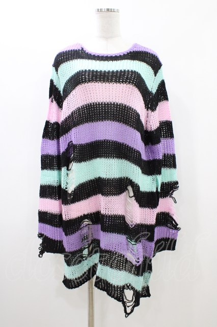 KILL STAR / Pastel Punk Knit Sweater L 黒×ピンク×パープル×ミント H-26-04-29-047-SL-TO-KB-ZH