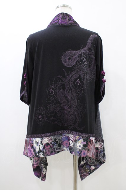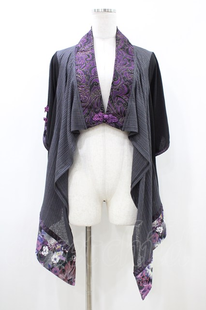 Qutie Frash / 和柄切替カーデ 黒 H-26-04-29-040-QU-TO-AK-ZH