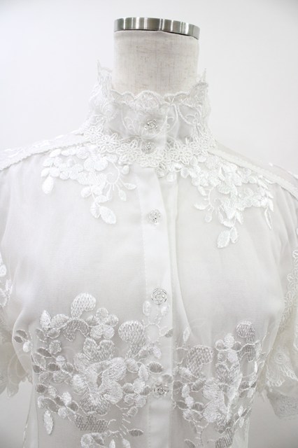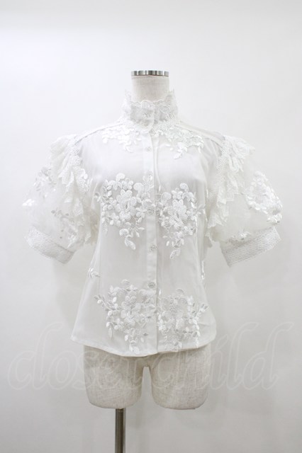 Triple fortune / 刺繍ブラウス(半袖) L 白 H-26-04-29-042-EL-BL-AK-ZH