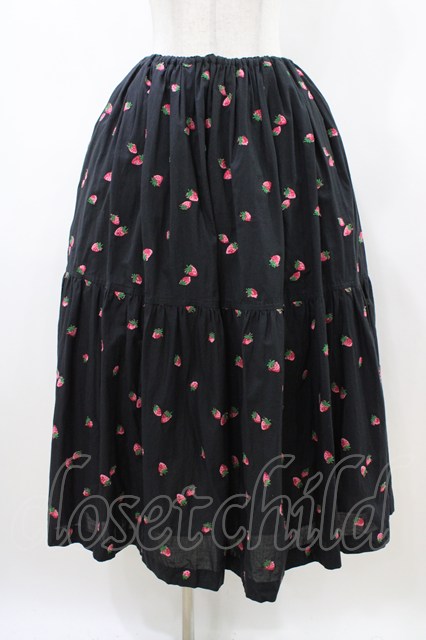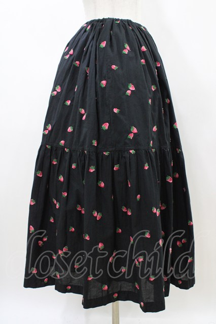 Jane Marple / Very berries embroideryスカート ブラック H-26-04-29-022-JM-SK-KB-ZH