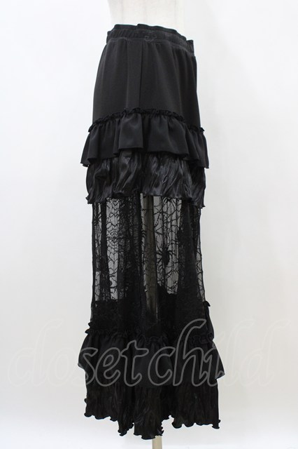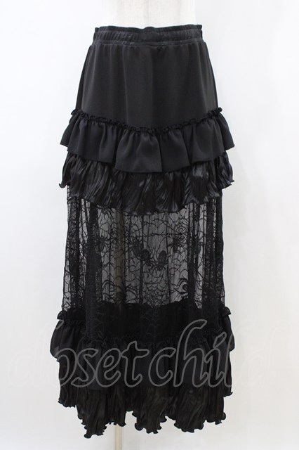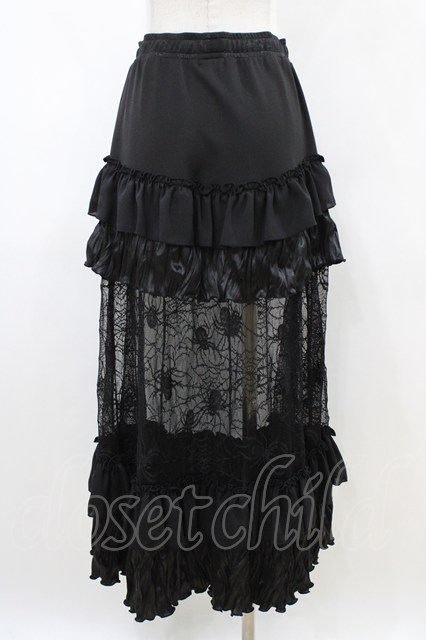 Qutie Frash / クモメッシュロングスカート 黒 H-26-04-29-021-QU-SK-AK-ZH