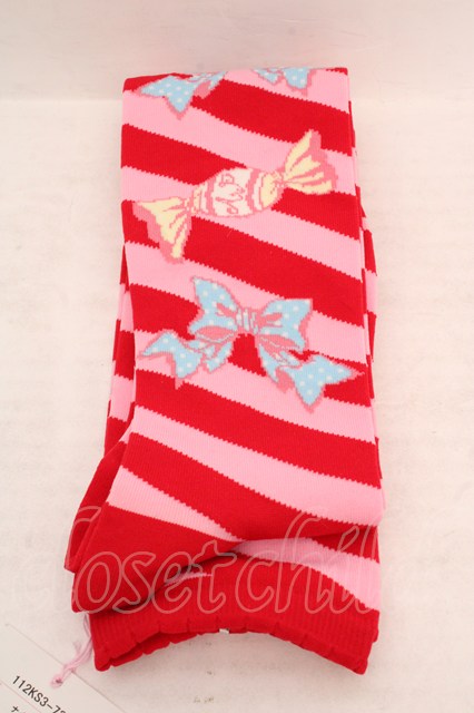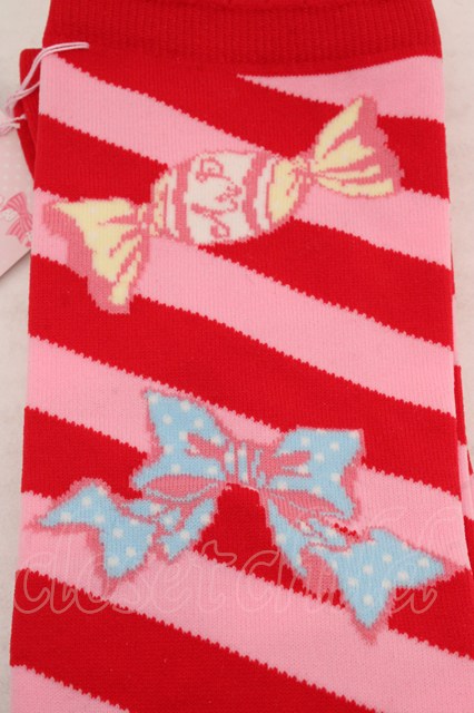 Angelic Pretty / キャンディーボーダーオーバーニー(2011) アカ×ピンク O-26-04-23-015-AP-ZA-IG-OS [2100080000081158-O-26-04-23-015-AP-ZA-IG-OS]