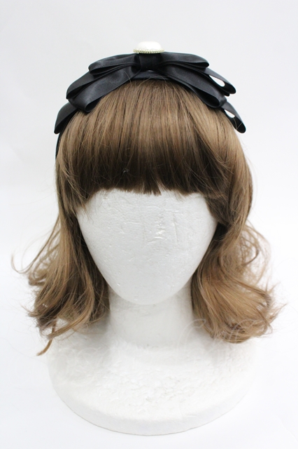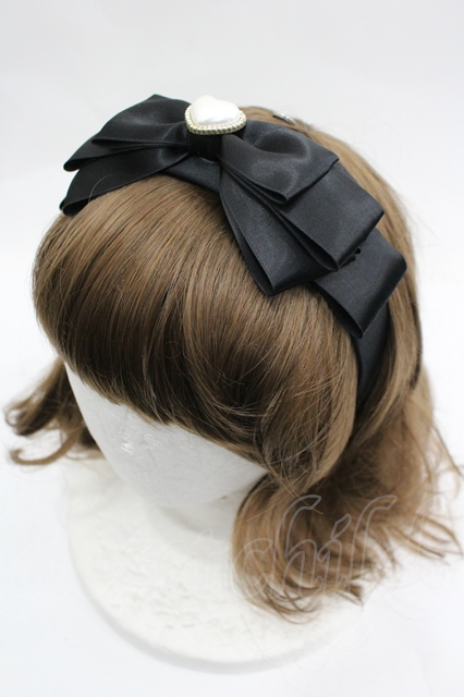 LOLITAその他(お買取対象外) / ハートパールリボンカチューシャ 黒 I-26-04-22-125-LO-AC-TE-ZI