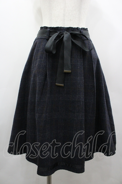 axes femme / リボン付タック入りスカート 黒チェック I-26-04-22-081-AX-SK-SA-ZI [2100060000055061-I-26-04-22-081-AX-SK-SA-ZI]