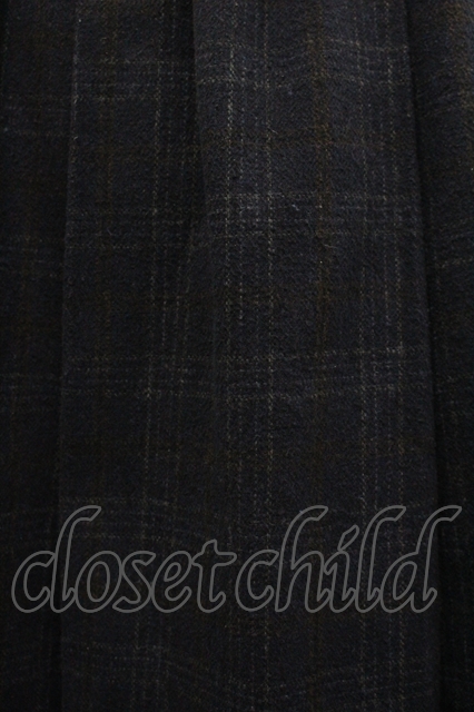 axes femme / リボン付タック入りスカート 黒チェック I-26-04-22-081-AX-SK-SA-ZI