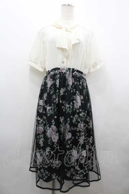 axes femme / リボン付レイヤード花柄ワンピース F 黒 I-26-04-22-040-AX-OP-TE-ZI [2100060000055050-I-26-04-22-040-AX-OP-TE-ZI]