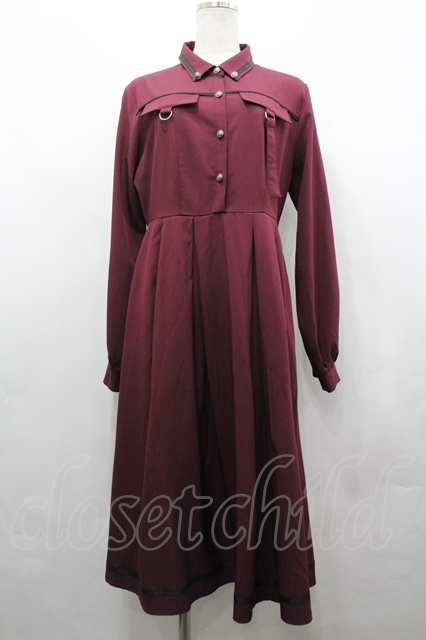 axes femme / ミリタリー風シャツワンピース ボルドー I-26-04-22-044-AX-OP-SA-ZI
