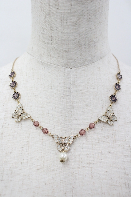 axes femme / パピヨンフルールネックレス 白 I-26-04-22-101-AX-AC-SA-ZI