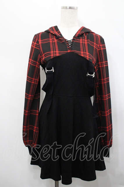 PUNK RAVE / チェックフードワンピース 赤チェックX黒 I-26-04-22-059-PU-OP-SA-ZI [2100060000048113-I-26-04-22-059-PU-OP-SA-ZI]