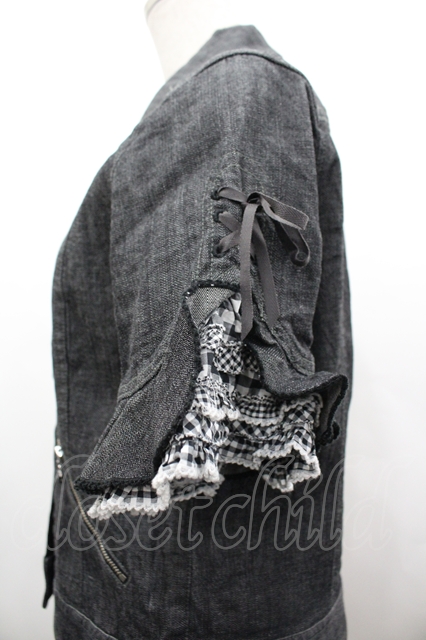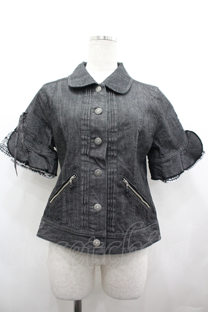 PINK HOUSE / 袖半袖フリルデニムジャケット M ブラック I-26-04-22-030-LO-JA-SA-ZI [2100060000054918-I-26-04-22-030-LO-JA-SA-ZI]