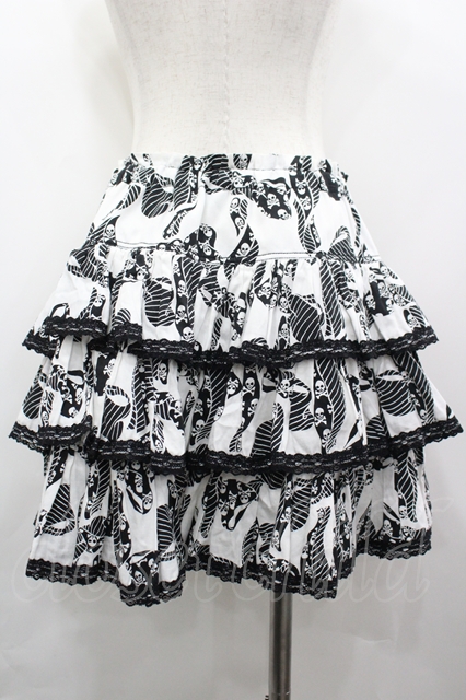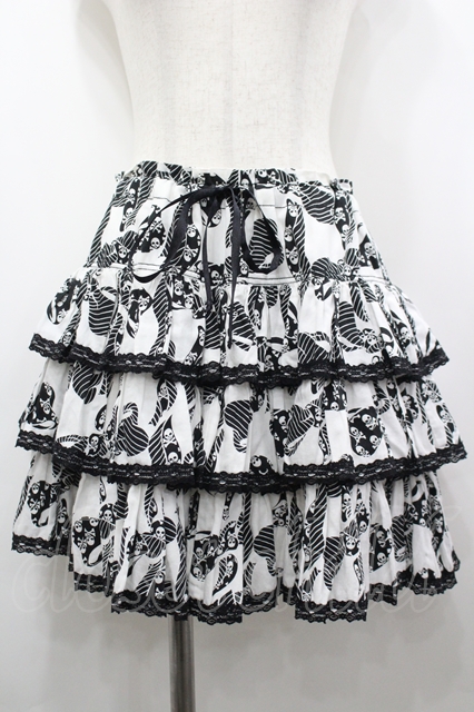 ALGONQUINS / ドクロリボンプリント3段スカート 白X黒 I-26-04-22-088-AL-SK-SA-ZI [2100060000054910-I-26-04-22-088-AL-SK-SA-ZI]