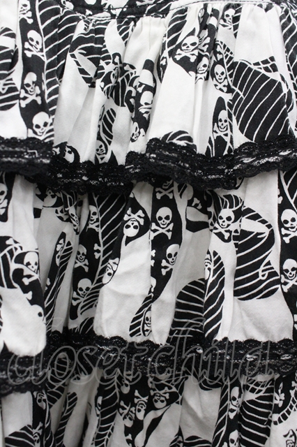 ALGONQUINS / ドクロリボンプリント3段スカート 白X黒 I-26-04-22-088-AL-SK-SA-ZI