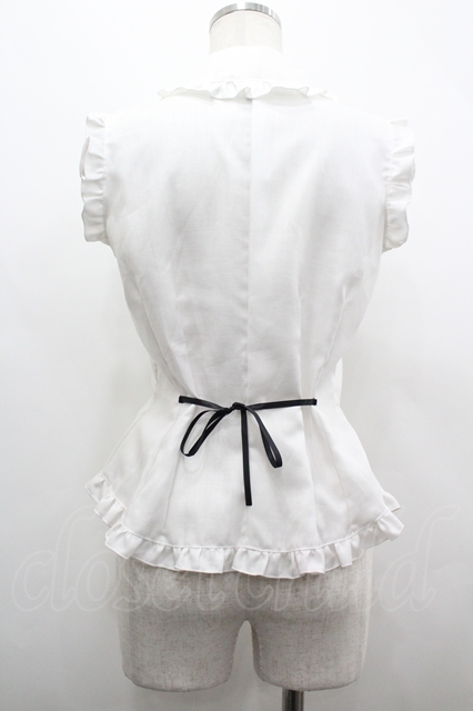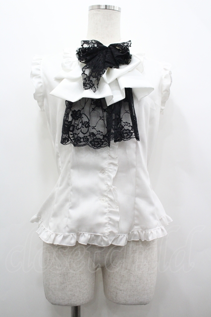 MARBLE / レースリボンジャボ付きノースリーブブラウス 白X黒 I-26-04-22-004-GO-BL-SA-ZI [2100060000054928-I-26-04-22-004-GO-BL-SA-ZI]