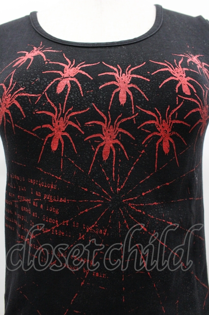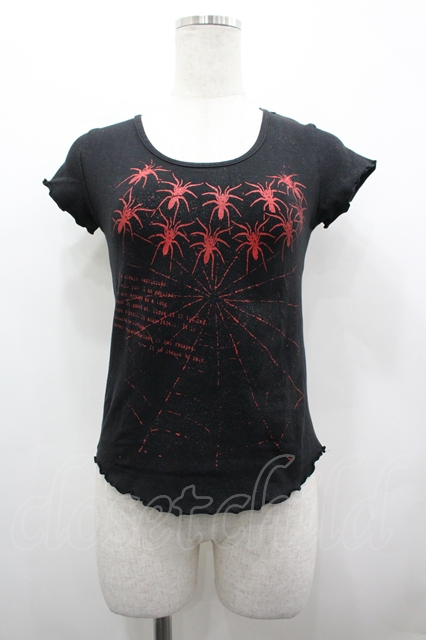 h.ANARCHY / 蜘蛛の巣プリント半袖カットソー 黒X赤 I-26-04-22-017-HN-TO-SA-ZI [2100060000054906-I-26-04-22-017-HN-TO-SA-ZI]