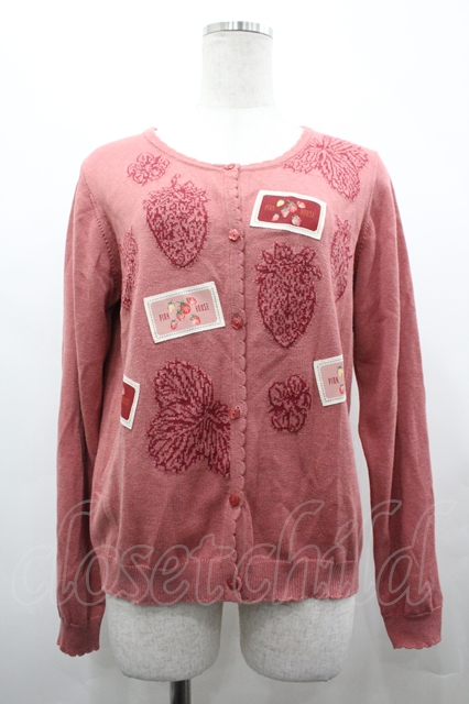 PINK HOUSE / いちごモチーフ編み込みニットカーディガン ピンク I-26-04-22-025-LO-TO-SA-ZI [2100060000043445-I-26-04-22-025-LO-TO-SA-ZI]