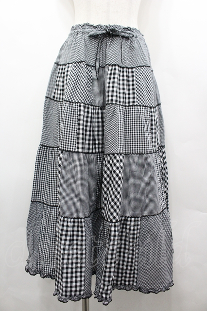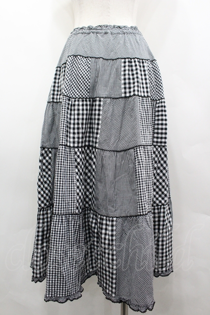 PINK HOUSE / ギンガムチェックパッチワークスカート 黒×白 I-26-04-22-075-LO-SK-TE-ZI [2100060000054889-I-26-04-22-075-LO-SK-TE-ZI]