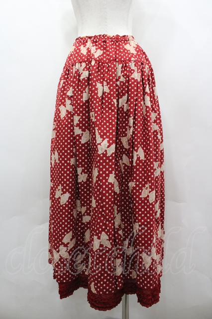 PINK HOUSE / 水玉りぼんプリントスカート 赤 I-26-04-22-074-LO-SK-TE-ZI [2100060000054894-I-26-04-22-074-LO-SK-TE-ZI]