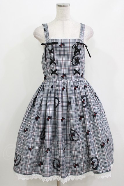 axes femme kawaii / おさんぽテリア柄ジャンスカ M グレー H-26-04-28-002-AX-OP-NS-ZH
