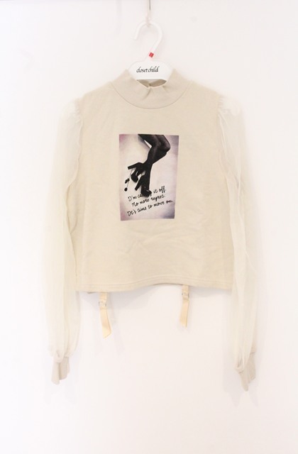 EATME / チュール袖グラフィックトップ F ベージュ O-26-04-22-031-LO-TO-YM-OS [2100080000079901-O-26-04-22-031-LO-TO-YM-OS]