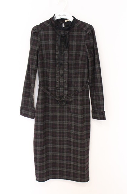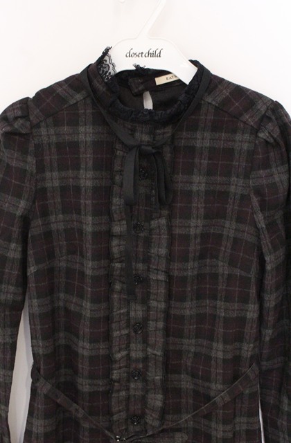 EATME / ラッフルシャツワンピース S ブラックxワイン O-26-04-22-010-LO-OP-YM-OS