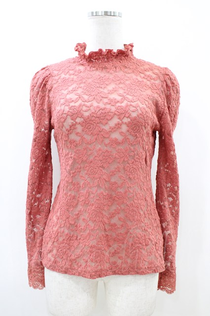 an another angelus / 総レースパワショルトップス Free CORAL RED H-26-04-30-048-CA-TO-NS-ZH