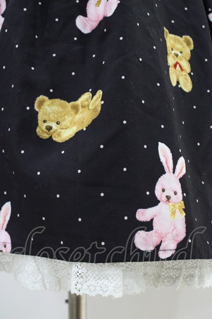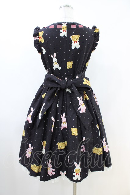 Ank Rouge / ドットぬいぐるみ柄ウエストリボンジャンパースカート M ブラック H-26-04-30-028-CA-OP-NS-ZH