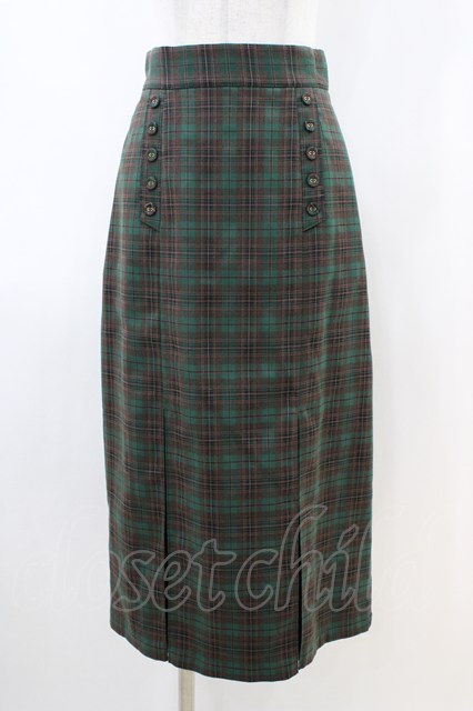 an another angelus / 釦使いチェックナローシルエットスカート Free GREEN×BE H-26-04-30-041-CA-SK-NS-ZH
