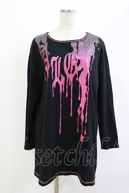 ALGONQUINS / プリントロングカットソー 黒×ピンク H-26-04-29-1025-AL-TO-KB-ZH