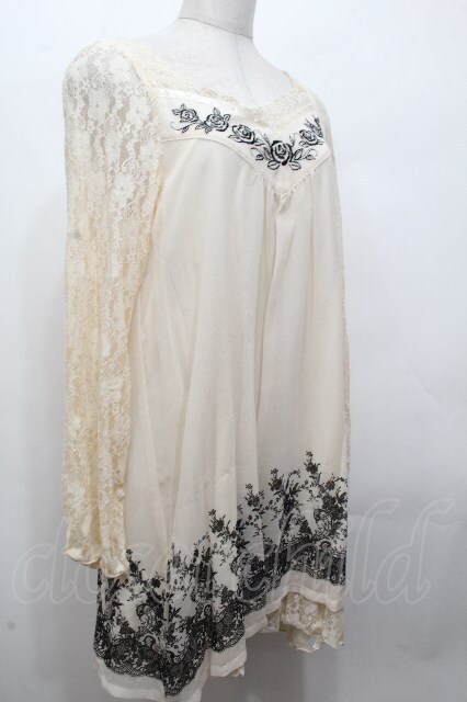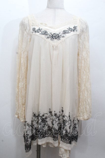 axes femme / 袖レース刺繍入りチュニ キナリ S-26-04-24-013-AX-TO-HR-ZS