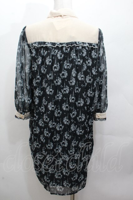 axes femme / エッフェル塔柄チュニック 黒 S-26-04-24-025-AX-OP-HR-ZS