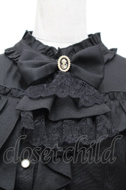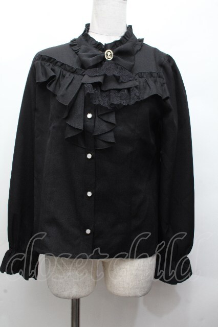 axes femme / リボン×ジャボブローチ付ブラウス M 黒 S-26-04-24-028-AX-BL-AS-ZS