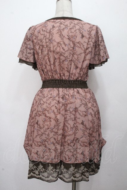axes femme / ローズリーフ柄シルエットワンピース アワピンク S-26-04-24-040-AX-OP-HR-ZS