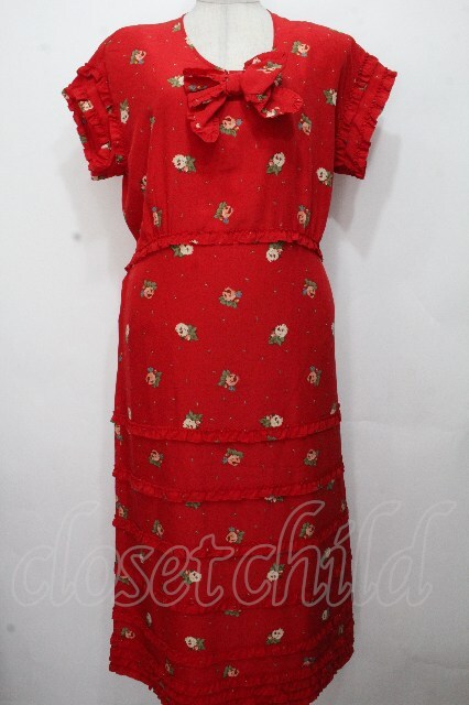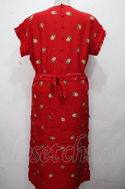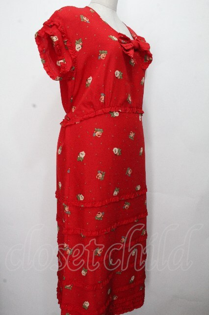 PINK HOUSE / フリルボーダー花柄ワンピース 赤 S-26-04-24-043-LO-OP-HR-ZS