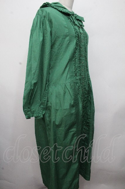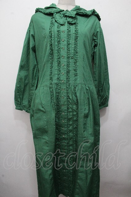 PINK HOUSE / ピンタックリボンフード付きワンピース グリーン S-26-04-24-050-LO-OP-HR-ZS